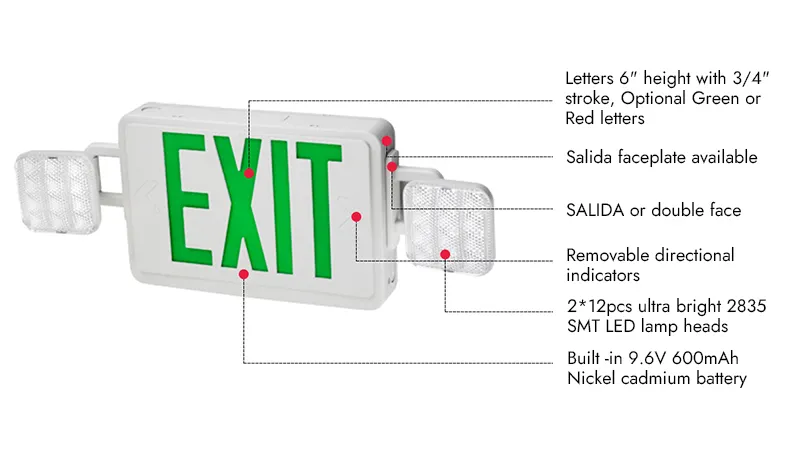 JLEC2GW/JLEC2RW Señal de salida LED combinada con luz de emergencia (letras verdes/rojas)